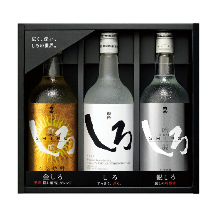 冬ギフト お歳暮 2025 焼酎 飲み比べ 金銀しろ 白岳しろ 本格米焼酎 3本セット 720ml 3本 25度 米焼酎 高橋酒造 化粧箱入 送料無料