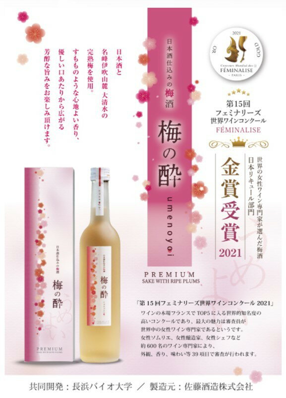 【送料無料】佐藤酒造 日本酒仕込梅酒 梅の酔 500ml
