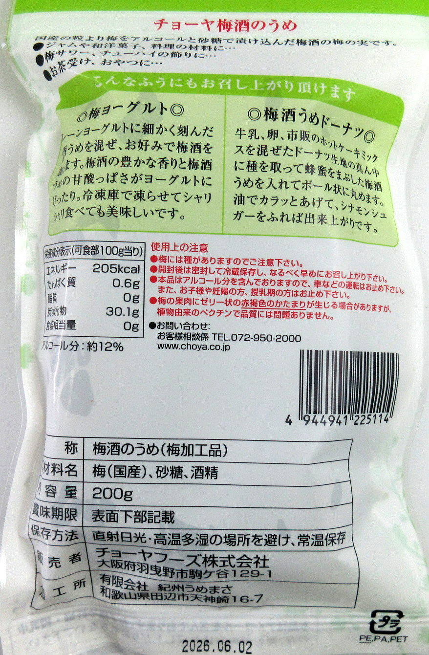 チョーヤ 梅酒の梅 200g×2個【北海道は発送不可】 チョーヤフーズ 梅酒梅 梅の実 チョーヤの梅