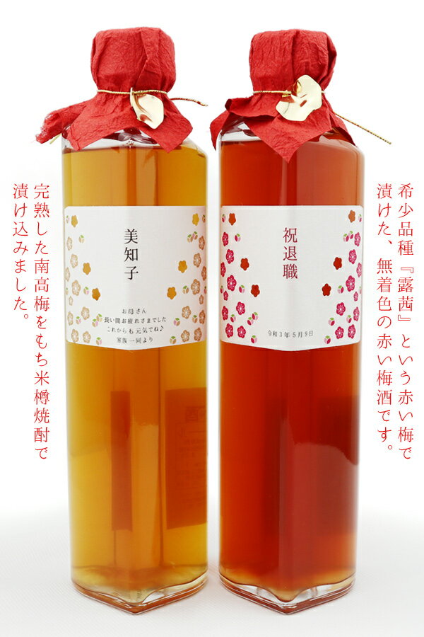 金婚式 プレゼント 両親 可愛いハート形の瓶に入った 珍しい赤い梅で作った赤い梅酒と完熟南高梅を使った 『名入れラベル 梅酒の飲み比べセット』【退職祝い 女性 定年 定年退職 退官 記念品 母 上司 会社関係 先生 恩師 祝い酒 名入れ 梅酒 美味しい 可愛い ペアボトル】