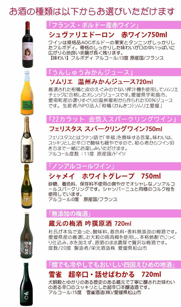 【母の日写真ラベルギフト】選べる5種類のお酒 & 温州みかんジュース