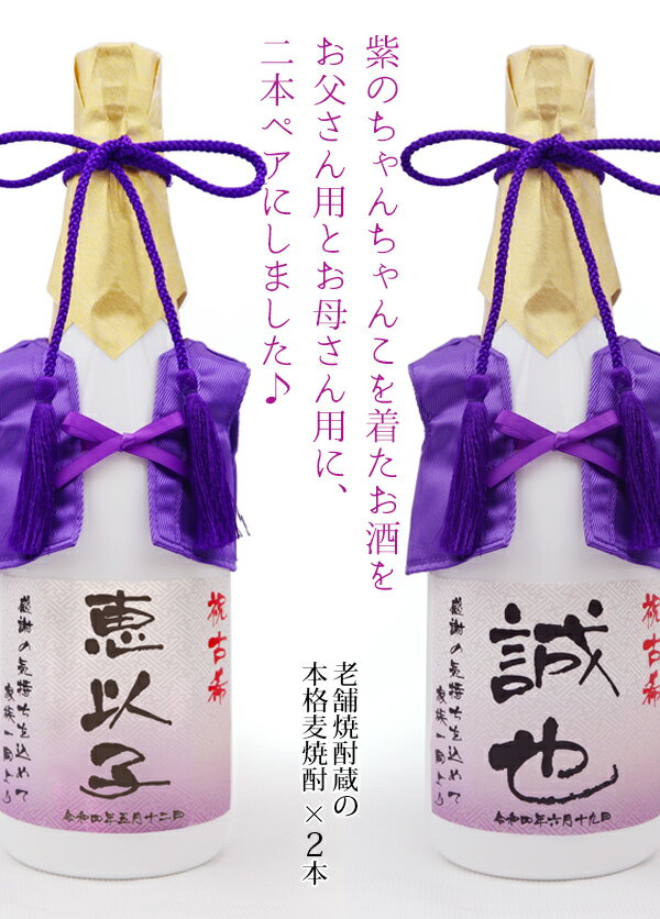 古希 お祝い 名入れ 梅酒 ペアボトル『紫のちゃんちゃんこを着た 名入れラベル酒』<老舗焼酎蔵のすっきり梅酒 720ml×2本セット>【ちゃんちゃんこ酒 白ボトル 古希祝い お酒 本格梅酒 父 男性 70歳 古希のお祝い プレゼント 紫色 父 お父さん 誕生日 贈り物 ギフト 両親】