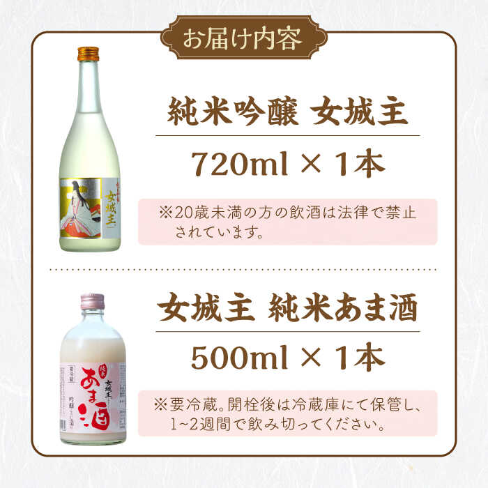 【ふるさと納税】女城主 純米吟醸(720ml)とあま酒(500ml)セット / 純米吟醸 甘酒 日本酒 女城主 地酒 銘酒 清酒 高級酒 アルコール 米麹 米糀 あまざけ ノンシュガー セット 贈答 ギフト お祝い 人気 おすすめ 岐阜県産 恵那市産 岐阜県 / 恵那市 / 岩村醸造 [AUAK004]