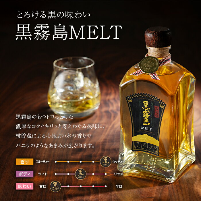 黒霧島MELT 720ml 30度 化粧箱入り 霧島酒造 酒 樽貯蔵 メルト めると 黒霧島 母の日 父の日 お中元 御中元 残暑見舞 敬老 長寿 お歳暮 御歳暮 バレンタイン 御祝 御礼 プレゼント ギフト お酒 記念