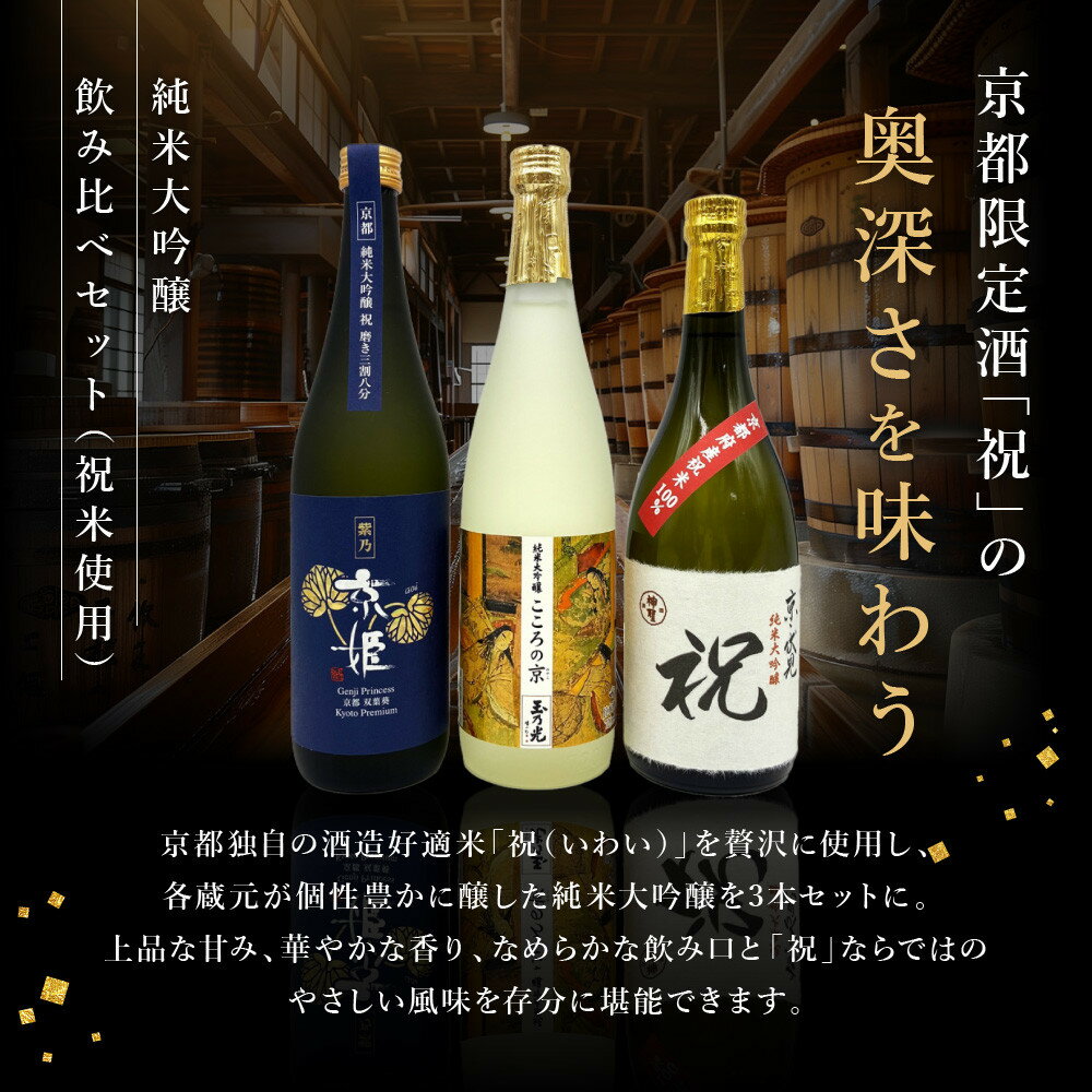 【ふるさと納税】【京都伏見の酒】京の酒米「祝」 純米大吟醸飲み比べセット2[ 京都 伏見 酒房 飲み比べ 純米大吟醸 人気 おすすめ お酒 日本酒 地酒 ご当地 酒蔵 酒造 ギフト プレゼント お取り寄せ 通販 送料無料 ふるさと納税 ]